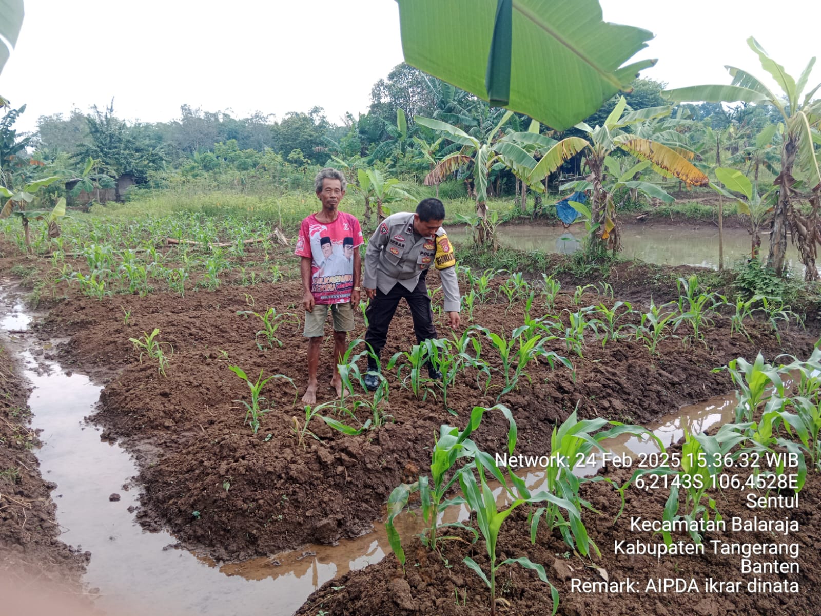 Bhabinkamtibmas Aipda Ikrar Dinata mengajak Sdr Maman di Kp. Cengkok RT 03/02 Desa Sentul Kecamatan Balaraja untuk memanfaatkan lahan pekarangan yang kosong untuk menanam berbagai aneka tanaman, sayuran maupun buah-buahan di Wilayah Hukum Polsek Balaraja Polresta Tangerang. Selasa (25/02/2025).