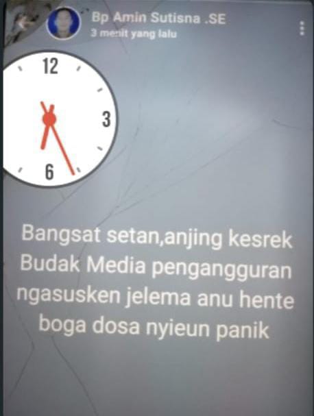 Alih-alih memberikan klarifikasi terbuka atas dugaan rangkap jabatan yang menjadi sorotan publik, yang bersangkutan justru diduga melontarkan serangan verbal bernada penghinaan dan pelecehan terhadap wartawan. Dugaan tersebut menguat setelah beredarnya tangkapan layar status WhatsApp yang diduga kuat ditulis oleh Amin Sutisna, berisi kata-kata kasar seperti “bangsat, setan, anjing kesrek, orang media pengangguran,” yang diduga ditujukan langsung kepada insan pers yang menjalankan tugas jurnalistik.