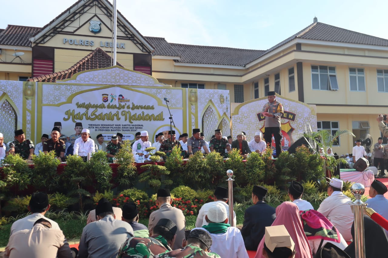 “Hal ini selaras dengan tema yang diusung pada peringatan kali ini yaitu dengan semangat Hari Santri Nasional kita wujudkan Pilkada tahun 2024 yang aman dan damai,” ujar orang Nomor satu di Polres Lebak.
