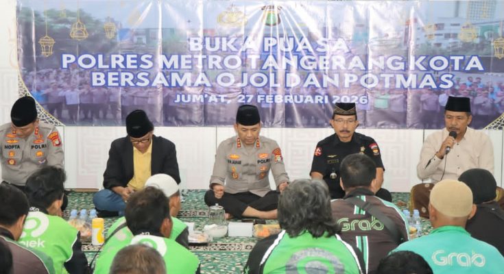 Suasana Ramadan terasa hangat dan penuh kebersamaan di depan Mako Polres Metro Tangerang Kota, Jumat (27/2/2026) sore.