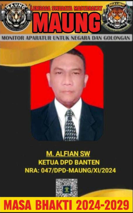 Penulis : M.ALFIAN.SW KETUA LEMBAGA SWADAYA MASYARAKAT (LSM) MONITOR APARATUR UNTUK NEGARA DAN GOLONGAN (MAUNG) DEWAN PIMPINAN DAERAH PROVINSI BANTEN.