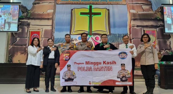 Serang,ADN.COM – Polda Banten melaksanakan kegiatan Minggu Kasih di Gereja Kristen Indonesia, Kota Serang pada Minggu (29/09/2024).
