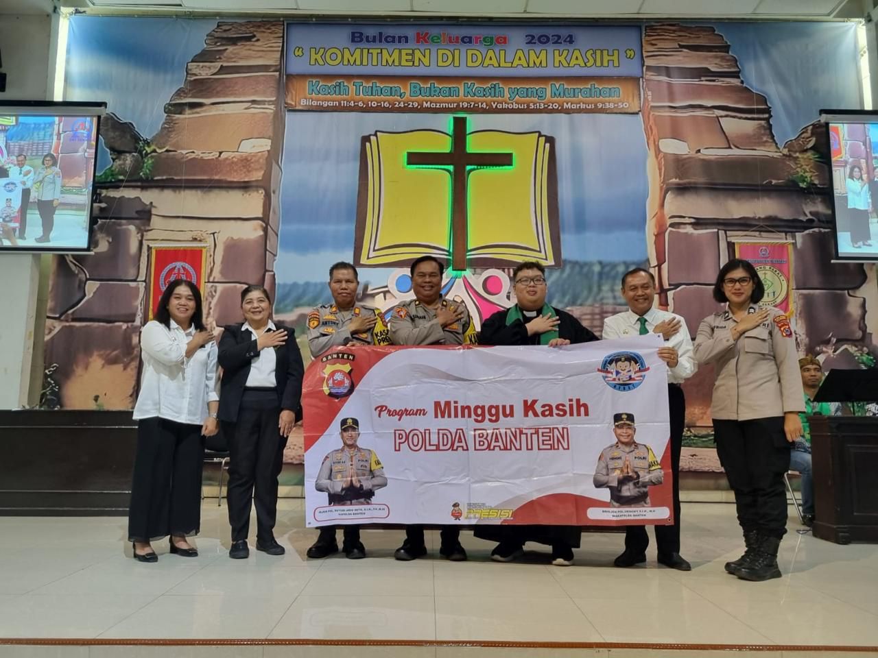 Serang,ADN.COM – Polda Banten melaksanakan kegiatan Minggu Kasih di Gereja Kristen Indonesia, Kota Serang pada Minggu (29/09/2024).