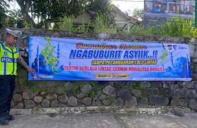 Ngabuburit Aman, Satlantas Polres Lebak Pasang Spanduk Himbauan Keselamatan Berkendara
