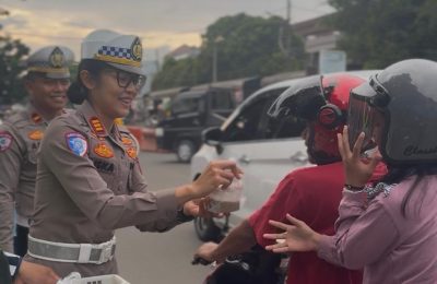 RAMADHAN BERKAH, SATLANTAS POLRES LEBAK BAGIKAN 200 TAKJIL, KAPOLRES LEBAK: WUJUD KEHADIRAN POLRI BERBAGI BERKAH DI BULAN SUCI RAMADHAN