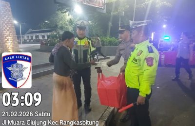 Satlantas Polres Lebak Laksanakan Sahur On The Road, Berbagi Makanan untuk Masyarakat