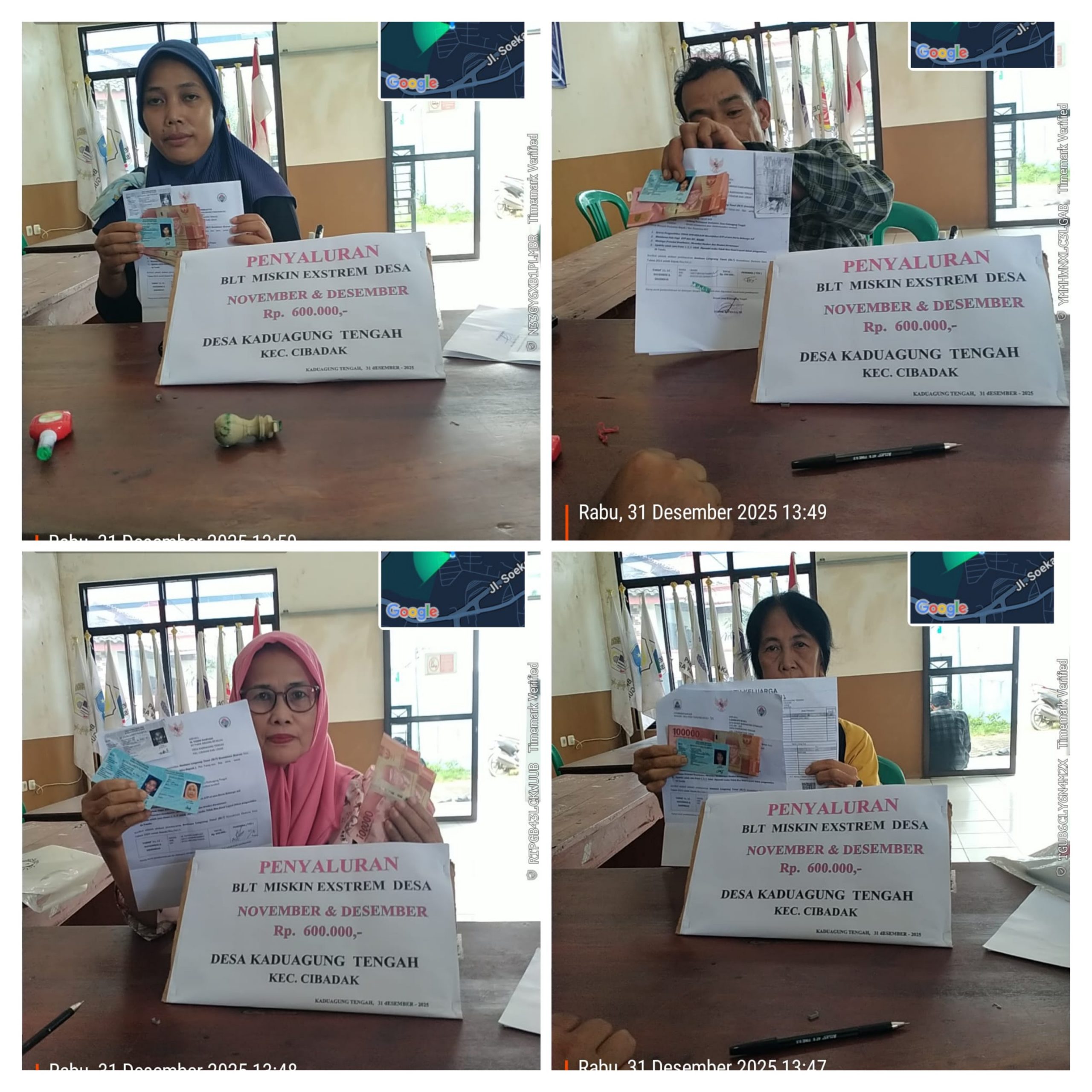“Alhamdulillah, hari ini Pemerintah Desa Kadu Agung Tengah telah menyalurkan BLT Dana Desa tahap 11 dan 12 untuk periode November dan Desember 2025 kepada 40 KPM. Semoga bantuan ini dapat meringankan beban ekonomi masyarakat dan dimanfaatkan untuk kebutuhan yang benar-benar penting,” ujar Totok Riyanto, SE.