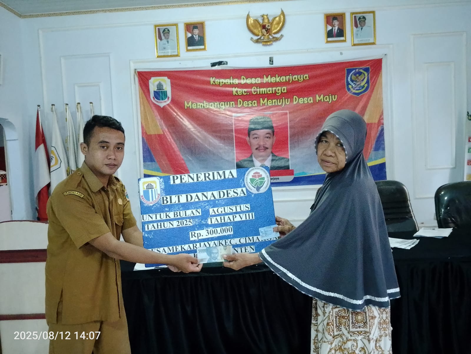 Lebak, Abydosonews.com – Pemerintah Desa Mekarjaya menyalurkan Bantuan Langsung Tunai (BLT) Dana Desa tahap ke-8 kepada 27 Keluarga Penerima Manfaat (KPM), Setiap KPM menerima bantuan sebesar Rp300.000 untuk periode satu bulan. Selasa (12/08/2025).