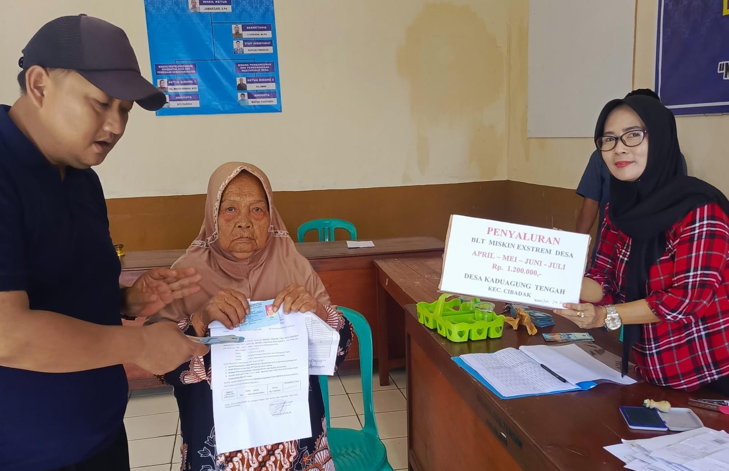 LEBAK, ADN.Com – Pemerintah Desa Kaduagung Tengah, Kecamatan Cibadak, Kabupaten Lebak, Banten, kembali menyalurkan Bantuan Langsung Tunai Dana Desa (BLT-DD) Tahap 2 untuk bulan April hingga Juli 2025 kepada 40 Keluarga Penerima Manfaat (KPM). Kegiatan penyaluran berlangsung pada hari Jumat (18/7/2025) bertempat di Kantor Desa Kaduagung Tengah.