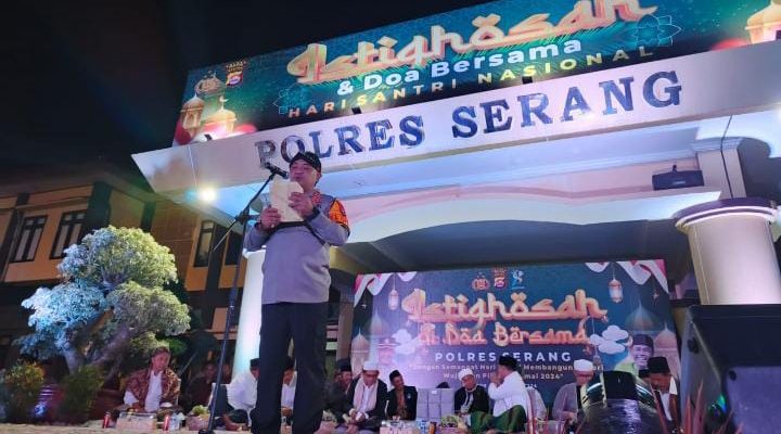 SERANG, ADN.COM – Ribuan santri dan santriwati dari berbagai pondok pesantren di Kabupaten Serang merayakan Hari Santri Nasional dengan menggelar istighosah dan doa bersama di Mapolres Serang pada Senin 21 Oktober 2024 malam.