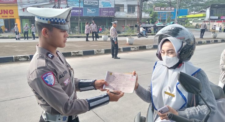 Petugas melakukan razia terhadap pengendara yang tidak mematuhi aturan lalu lintas, seperti tidak menggunakan helm, tidak mengenakan sabuk pengaman, dan berboncengan lebih dari satu orang. Selain itu, petugas juga memberikan sosialisasi tentang pentingnya keselamatan berlalu lintas kepada masyarakat.