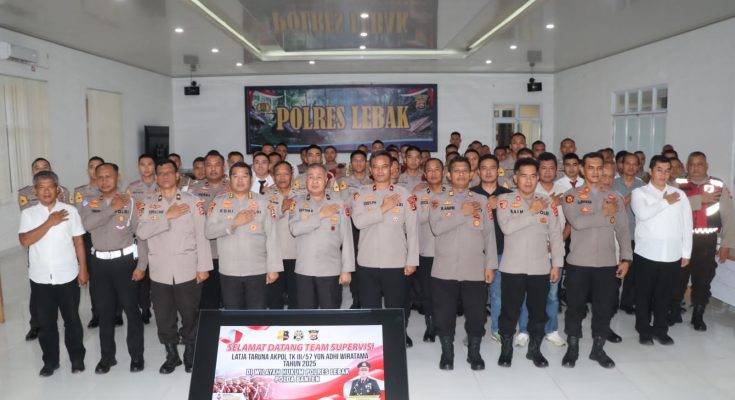 LEBAK, Abydosonews.com – Kepolisian Resor Lebak Polda Banten menerima Kunjungan Tim Supervisi dari Lemdiklat Akpol, Bagi Siswa Latja taruna Akpol TK III Angkatan 57 Batalyon Adhi Wiratama di aula Santika satyawada. Kegiatan ini bertujuan untuk Mengetahui Sejauh Mana Kegiatan Para Taruna Akpol dalam melaksanakan latihan kerja di Polres Lebak.Selasa (27/05/2025)