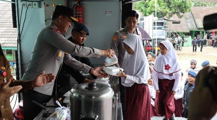 Serang, ADN.COM – Polda Banten menggelar program pemberian makan siang bergizi pada pelajar sebagai tindak lanjut Asta Cita Presiden RI bertempat di SDN Lopang Cilik, Kecamatan Serang, Kota Serang.
